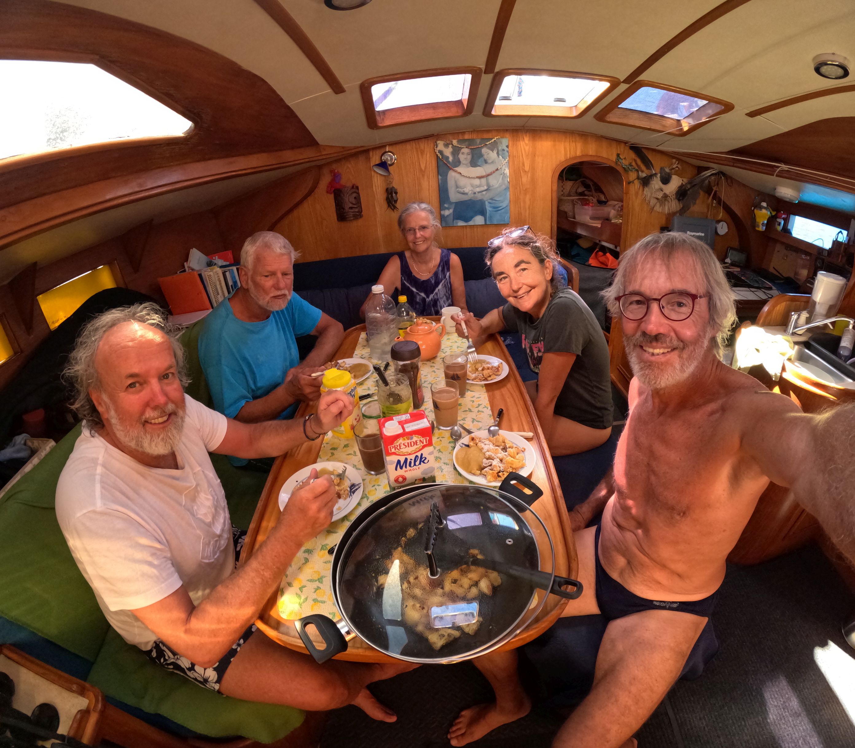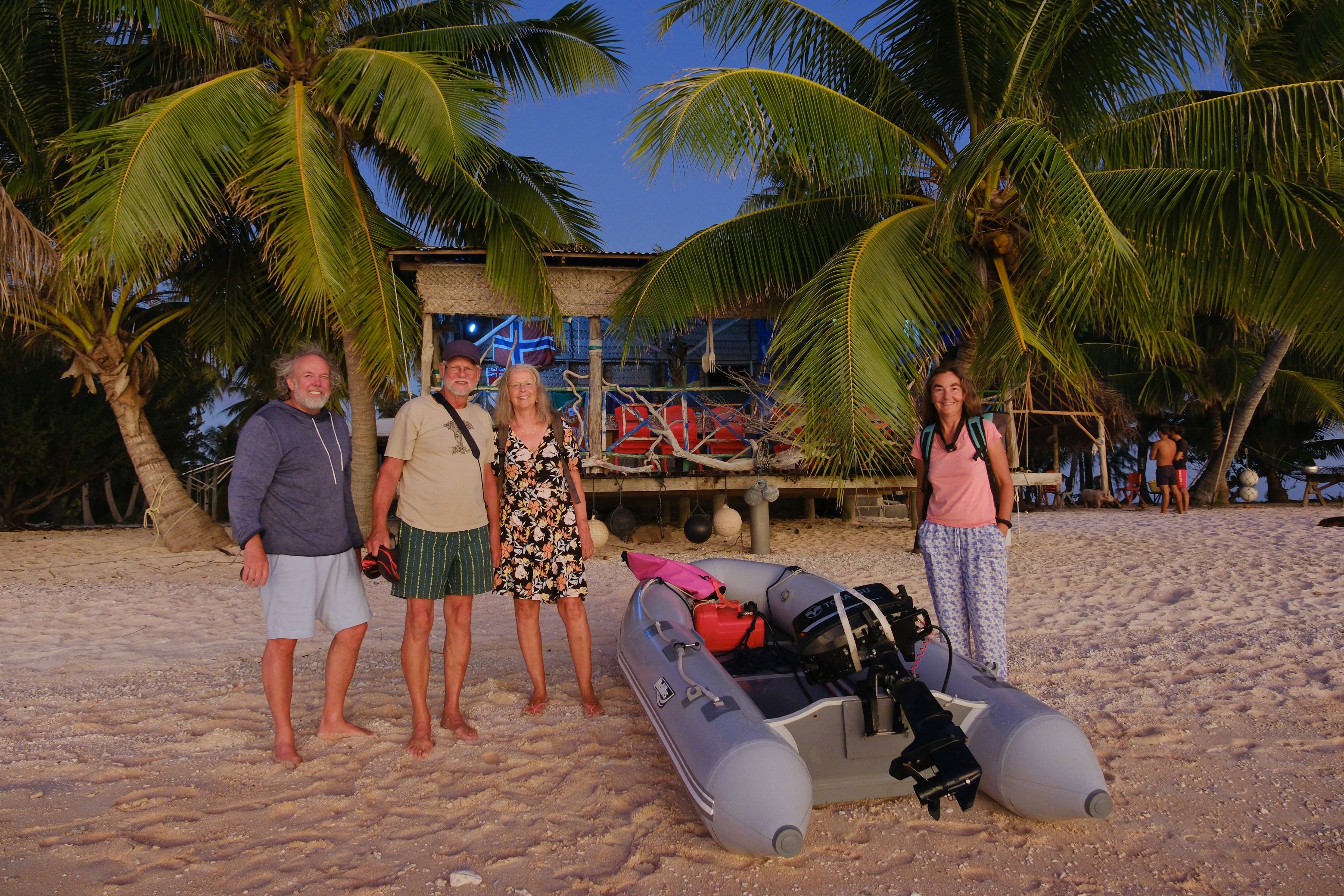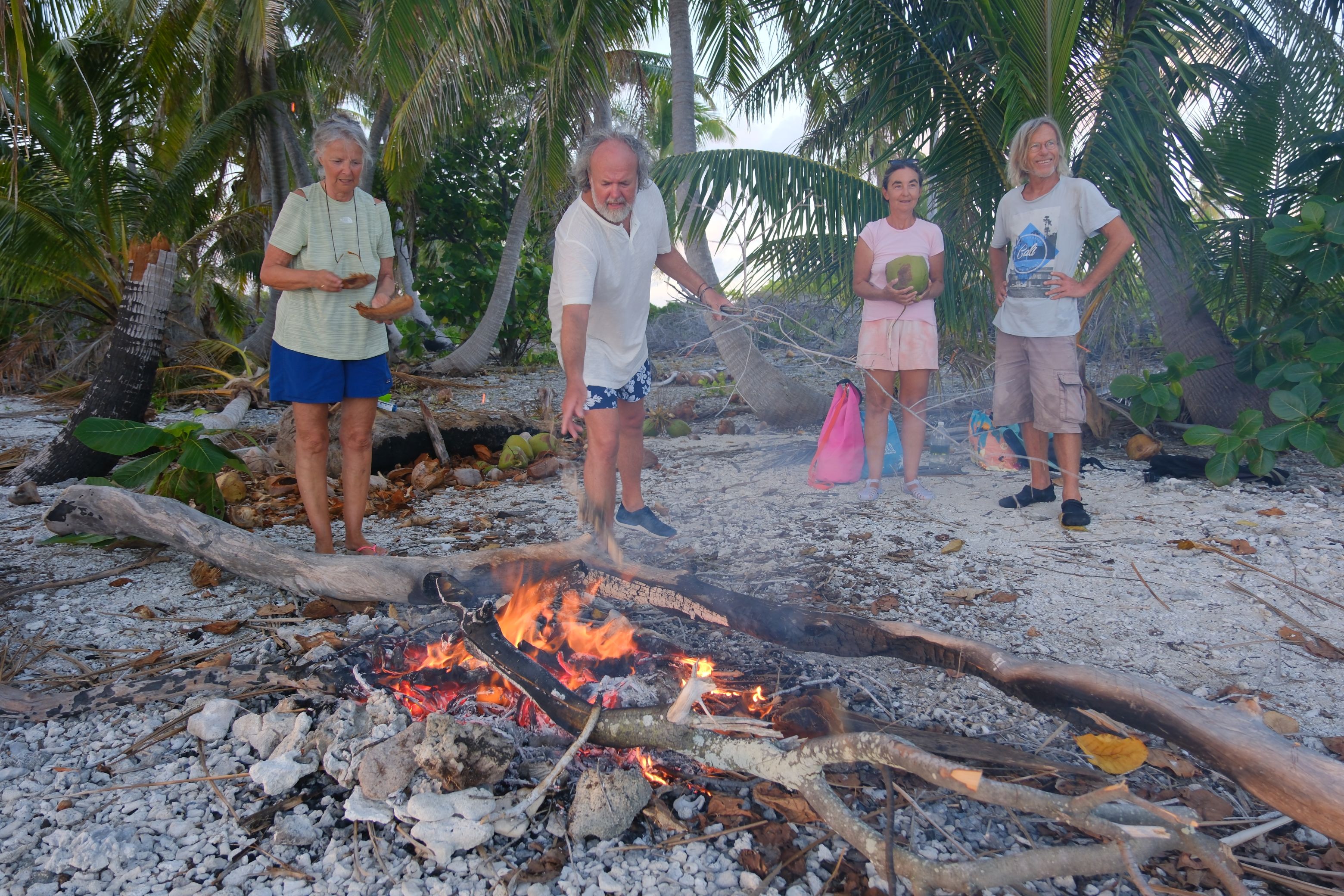 Zusammen mit Freunden von Doris und Wolf machten wir eine echte Weltumsegler-Party am Strand. Mit Lagerfeuer und selbst „gepflückten“ Kokosnüssen als Getränke und Nahrung, sowie mit allerlei Leckerem aus der Bordküche.