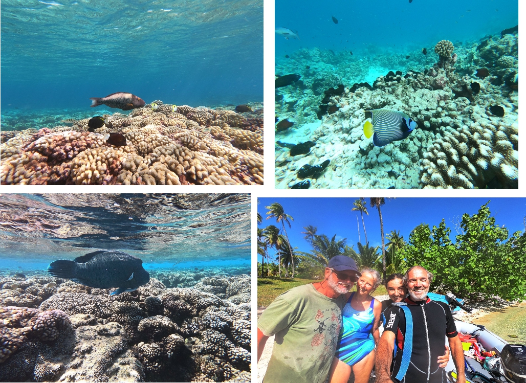 Am Riffdurchlass mit seinen Strömungen finden sich die meisten Fische ein. Wir fuhren bei einlaufendem Wasser mit dem Beiboot zur Seeseite und ließen uns schnorchelnd zurücktreiben, dass leere Beiboot an der Leine. (Link zu Google Maps)